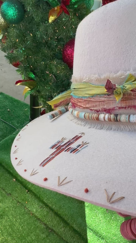 The Cactus Signature Rancher Hat makes a bold statement with a fun boho-Western edge! Featuring an embroidered cactus design on the brim and beautiful silk ribbons making up the hat band, this felt rancher hat adds just the right amount of style to any outfit.